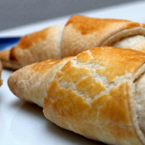 Einzigartig und rundum beliebt • Blätterteig • Vorder- Schinken • Magerquark • Rahm • CH-Vollei past • Senf • Salz • Petersilie • Pfeffer • ca. 50gr pro Stück • 50 Stück pro Verpackungseinheit • lose tiefgefroren • Tipp: Angetaute Schinkengipfel bei 200 Grad ca. 20 Minuten im vorgeheizten Umluftofen knusprig Backen • vor dem geniessen 10 Minuten abstehen lassen • Art. AP207